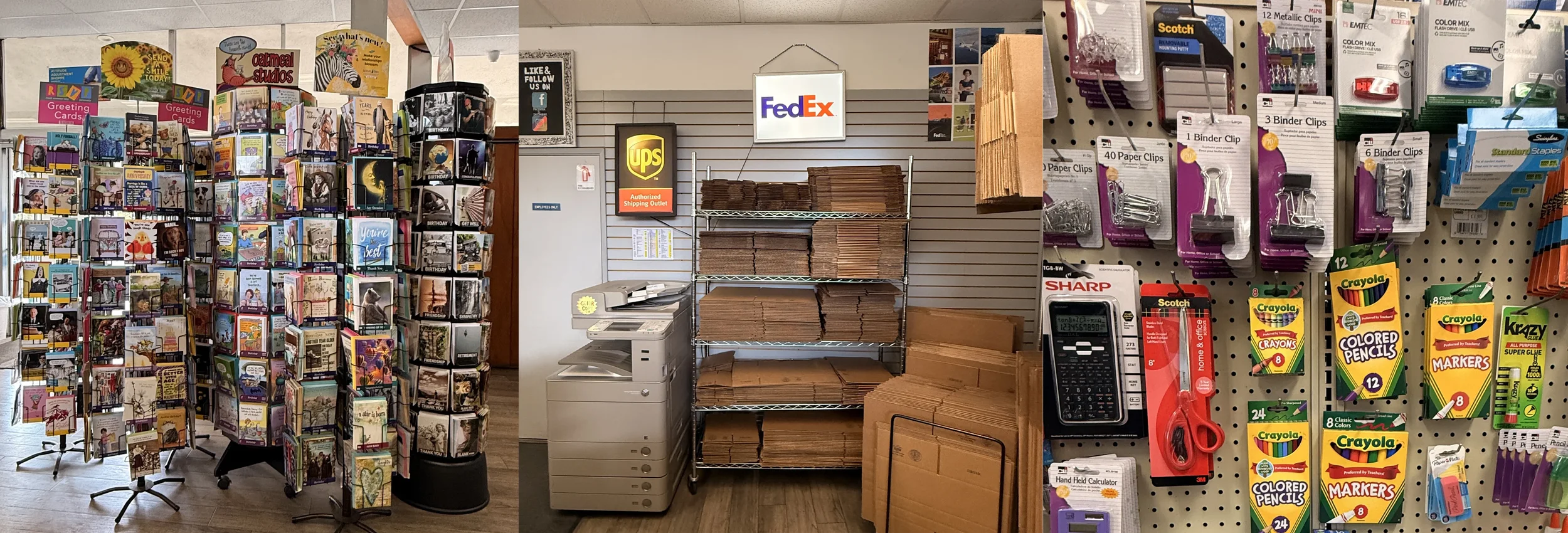Private Mailbox Rentals Packing Postage Snacks Boxes Cards + Stationery